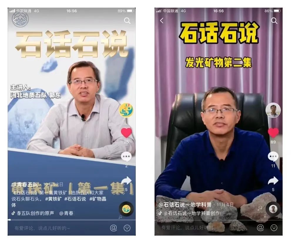 線上與線下的交相輝映,讓科普工作的開展更具特色。利用抖音平臺開辦“石話石說”地學科普欄目,75期欄目,2530個專粉,6563個贊,總瀏覽量20余萬次。科普人員用通俗易懂的語言講解美麗的礦物、多彩巖石與人類生活的密切關系,受到大眾的廣泛喜愛,其中有6期作品更是被“學習強國”唐山地方平臺轉載發(fā)布。